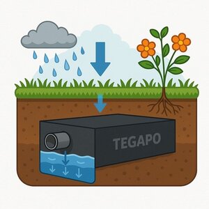 Kort samengevat: je graaft een gat, plaatst de infiltratiekrat kant-en-klaar met aansluiting, sluit de regenpijp aan en vult het gat weer dicht. Daarmee creëer je een buffer die regenwater opvangt en langzaam afgeeft aan de bodem. Hoeveel kratten je nodig hebt hangt af van het dak- of oppervlak dat je wilt aansluiten.