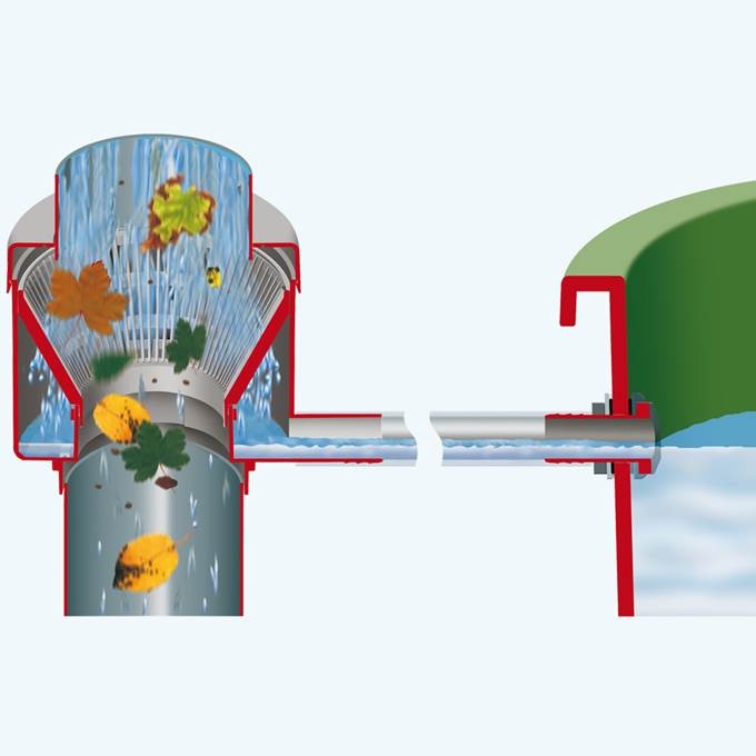 Dit vulsysteem kunt u installeren op regenpijpen van 50mm tot 60mm. Deze is geschikt voor PVC en zinken regenpijpen.