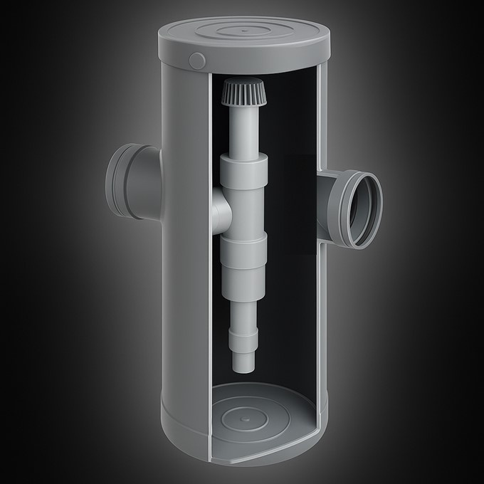 Voorkom verstopping van uw infiltratiekrat. Deze zandvanger (zandvangput) met 110 mm inlaat en 125 mm uitlaat scheidt zand, bladeren en ander vuil uit het regenwater voordat het de infiltratiekrat bereikt. Het vuil bezinkt op de bodem en kan periodiek eenvoudig worden geleegd. Zo blijft de infiltratiekrat schoon en presteert het systeem jarenlang optimaal.